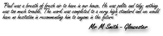Paul has worked for some of Gloucestershire's most prestigious kitchen companies such as Gloucester Kitchen Centre fitting Kitchens, Bedrooms and Bathrooms. Paul has also worked for Cotswold Kitchens Nailsworth as a Kitchen Fitter, fitting kitchens throughout Gloucester. Paul has also worked with companies such as David Wilson Homes as a Carpenter/Joiner.